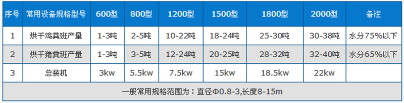 豬糞烘干機(jī)技術(shù)參數(shù)